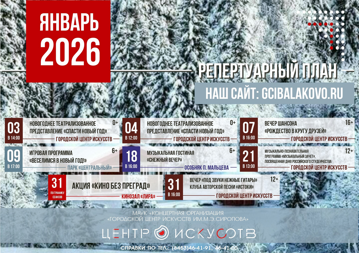 Балаковцев в январе ждёт насыщенная культурная программа в Городском центре искусств