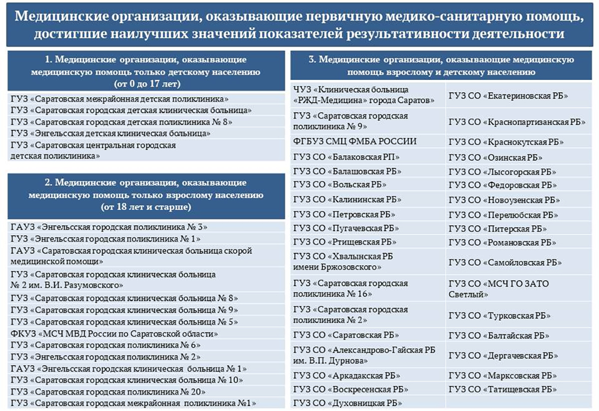 Среди медицинских организаций, оказывающих помощь как взрослым, так и детям, Балаковская районная поликлиника была отмечена как одна из лучших по результативности оказания первичной медико-санитарной помощи.