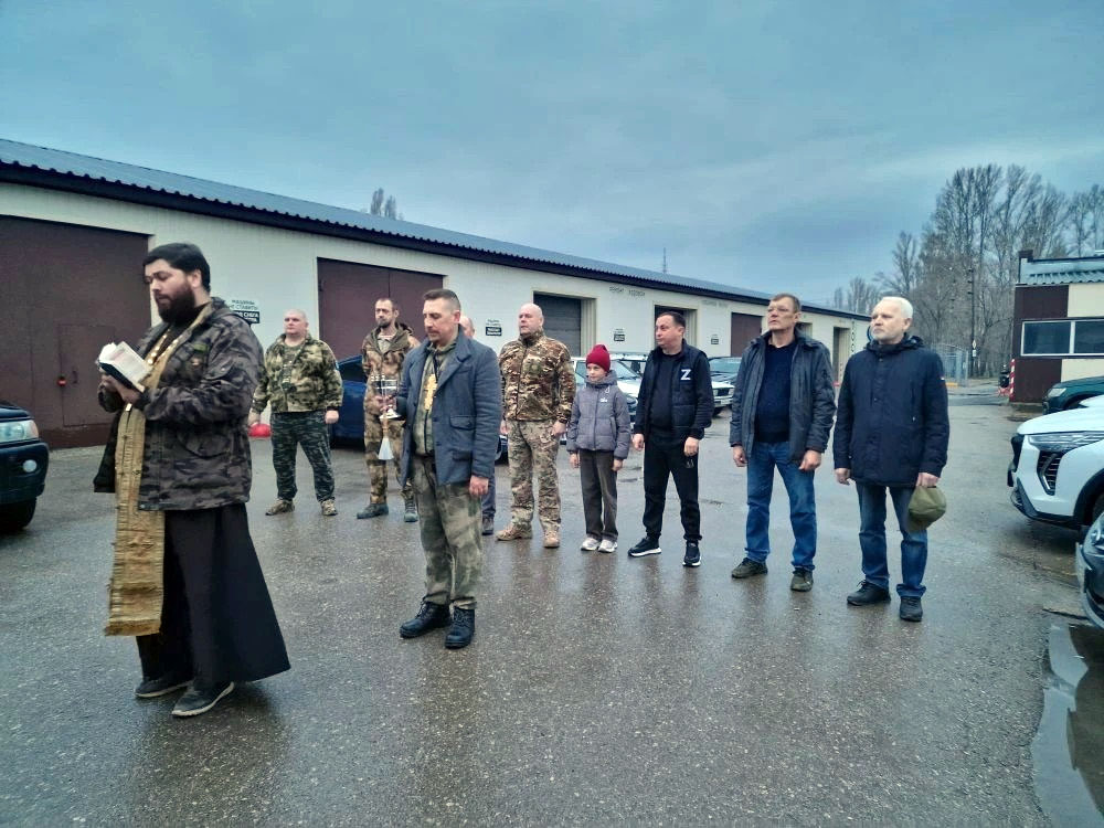 Перед выездом колонну и всех участников рейса благословил отец Иоанн Сеньков, который с помощью прихожан активно собирает гуманитарную помощь и сам нередко ездит в гуманитарном конвое.