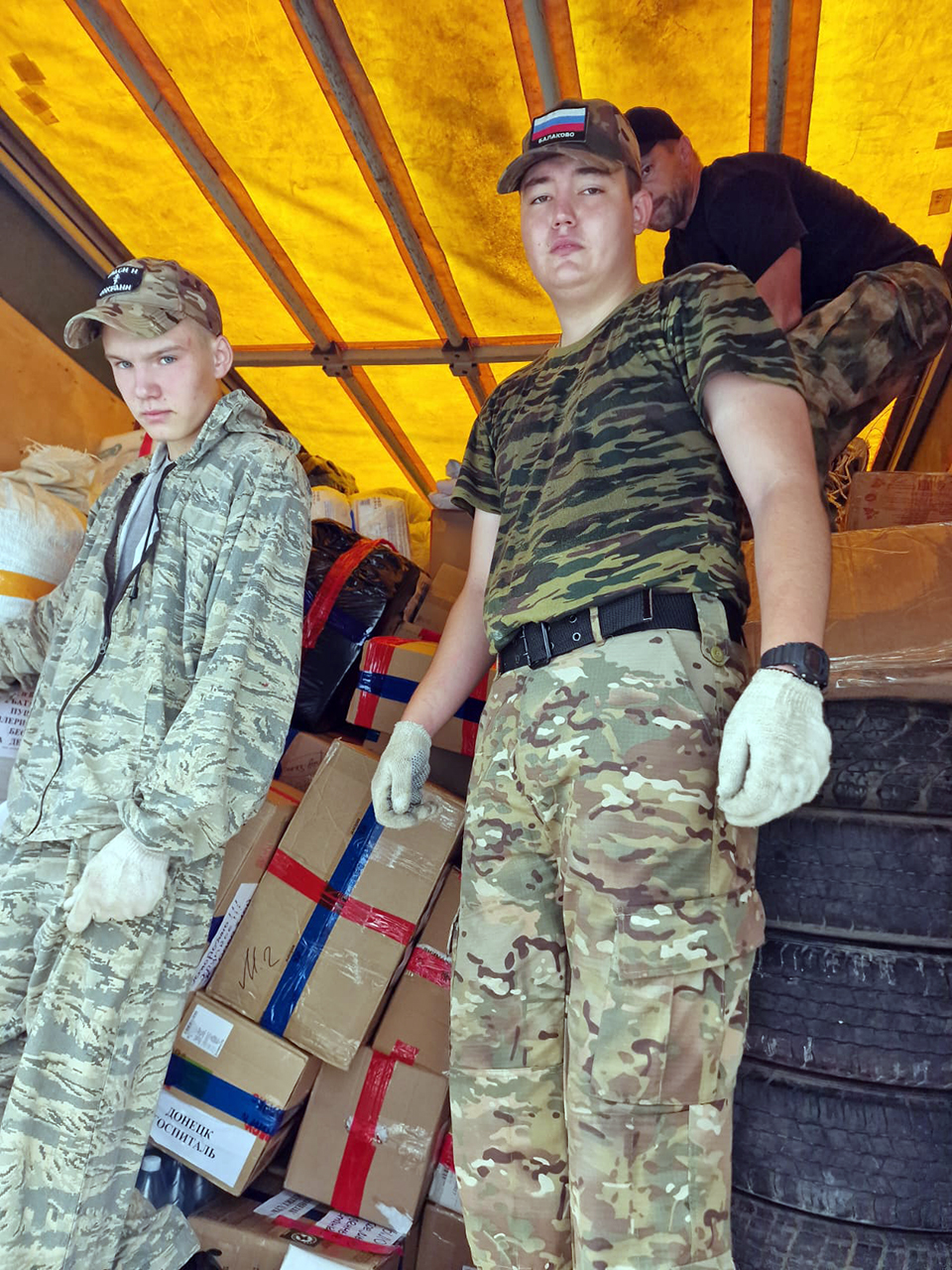 Волонтёры, включая членов «Боевого братства», представителей сообществ «Русская община» и «Северный человек», а также студентов Губернаторского колледжа, помогли в погрузке гуманитарного груза.