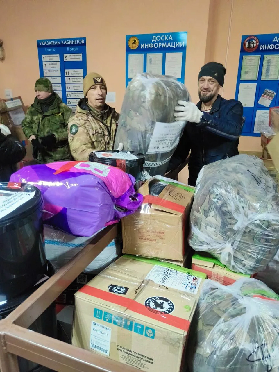 Площадка у офиса «Боевого братства» сегодня напоминала крупный логистический центр. Коробки с продуктами и самым необходимым для бойцов, стройматериалы, волонтеры, которые их загружали, занимали все свободное пространство. Особое место в отправляемом грузе заняли медикаменты, собранные по прямому запросу от медиков полка 1198.