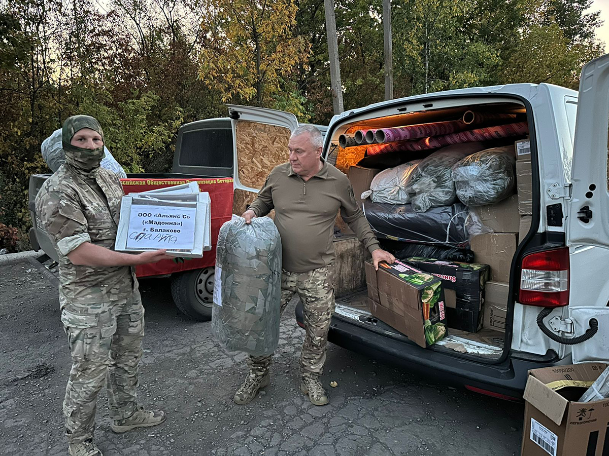 Груз был собран по заявкам бойцов-балаковцев и включал в себя стройматериалы, три генератора, автошины, камеры, маскировочные сети и запчасти, в том числе для российских беспилотников.