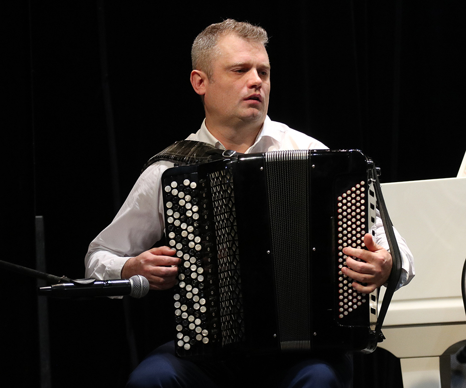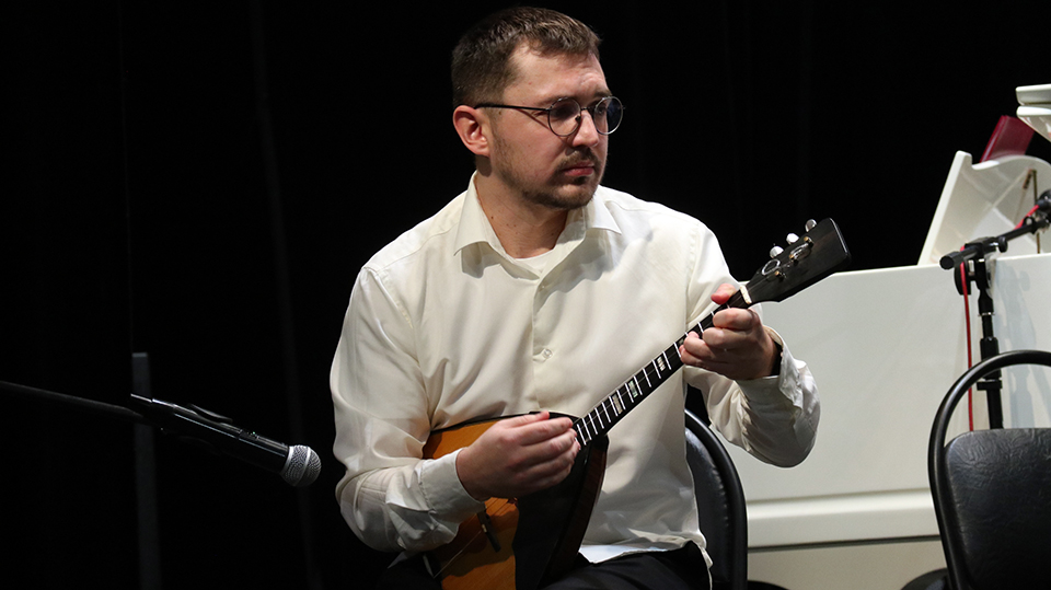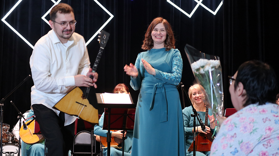 Традиционно гостей встречал струнный ансамбль «Элегия», создавая камерную и утонченную атмосферу в фойе. Однако первый сюрприз ждал публику уже в программе: впервые за 25 лет право открыть филармонический сезон получил ансамбль народных инструментов «Наигрыш» под управлением Ирины Овчинниковой. Их выступление стало символичным и ярким стартом. В исполнении коллектива прозвучали несколько композиций, включая премьеру – пьесу «Фатима» Нур Даутова. Публику также поразили виртуозные соло Никиты Сухарева (балалайка) и Сергея Шевырина (баян).