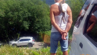 Пьяный водитель приехал жаловаться в ГИБДД на лишение прав с змеёй на шее