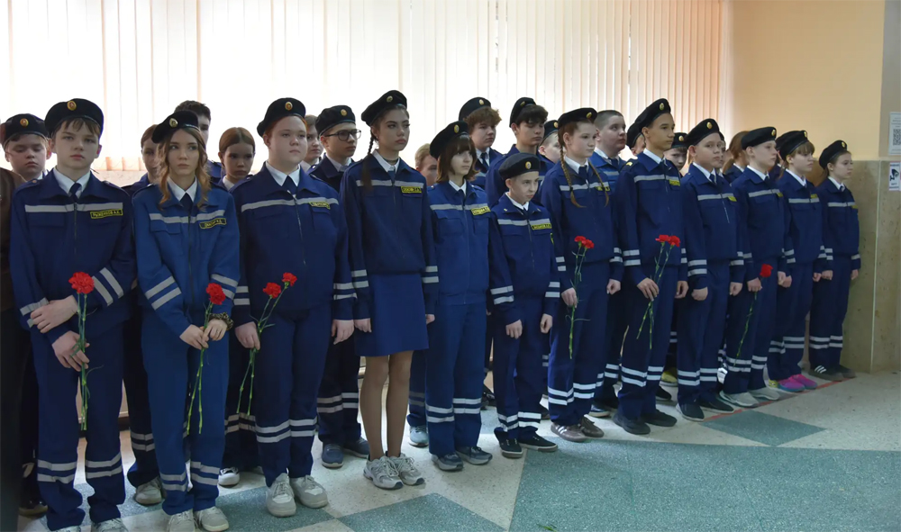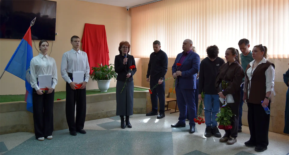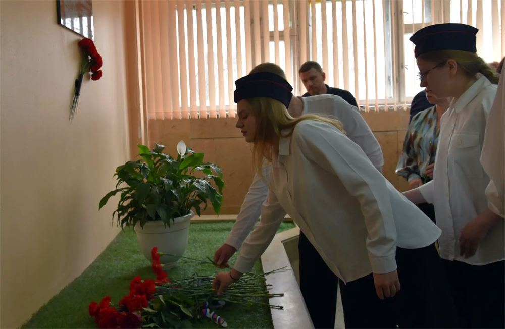 Ученики и гости почтили память героя минутой молчания, а затем возложили живые цветы к мемориальной доске, которая отныне будет напоминать каждому, кто переступит порог школы, о цене мирного неба.