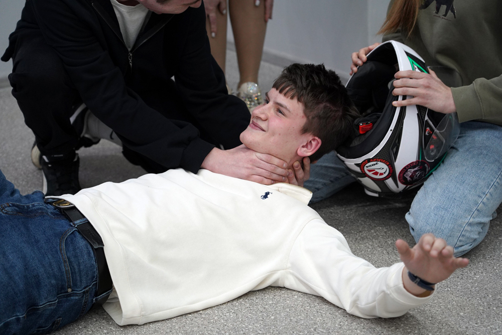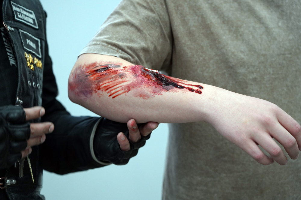 Практика, которая заставляет задуматься: для ребят провели курс по оказанию первой помощи пострадавшим мотоциклистам при ДТП. Тут наши гримёры из мотодвижения показали высший класс! Четырём студентам нанесли спецгрим, имитирующий страшные травмы различной степени тяжести. Кровь, открытые переломы и ссадины выглядели максимально реалистично.