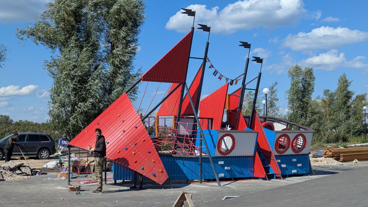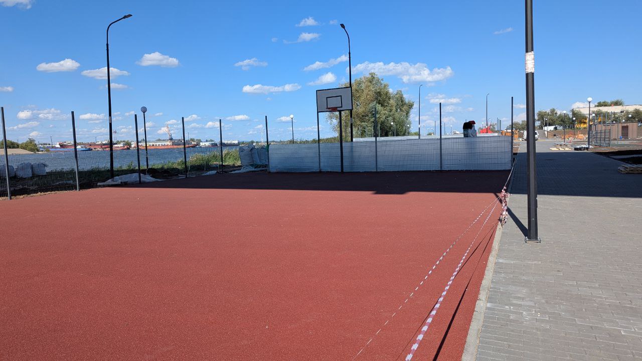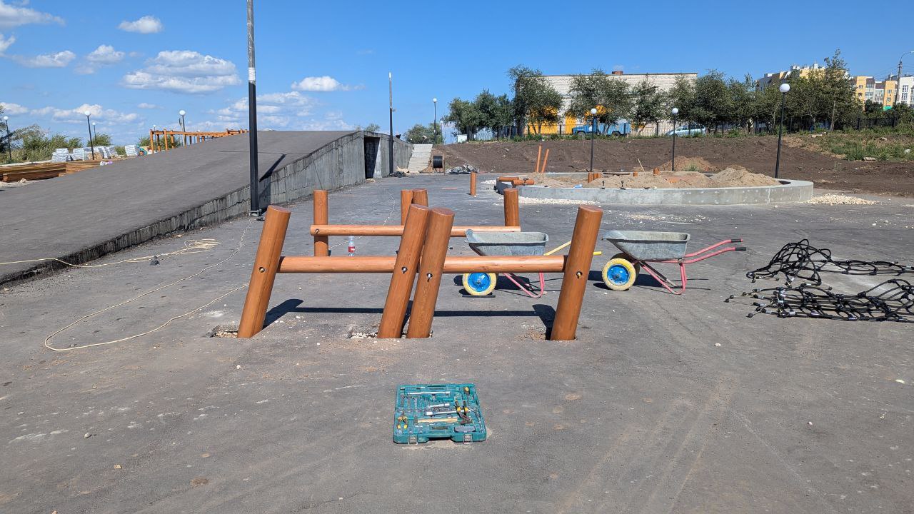 «Строители устанавливают элементы на детской площадке, красят малый амфитеатр и обрабатывают поверхность большого амфитеатра. На спортивных площадках уложили рекортановое покрытие, установили ограждения. На общественной территории появились прогулочные дорожки».