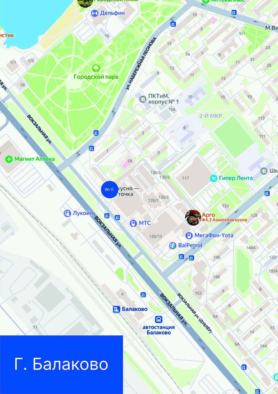 В связи с временными ограничениями мобильного интернета жители Балаково могут подключиться к бесплатному Wi-Fi в публичных точках доступа. Адреса и карта размещения зон подключения доступны ниже.