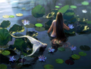 над водой, сидели русалки. Они заманивали парней и молодых мужчин, а потом утаскивали на дно водоёма. Детей русалки завлекали белыми цветами кувшинки.