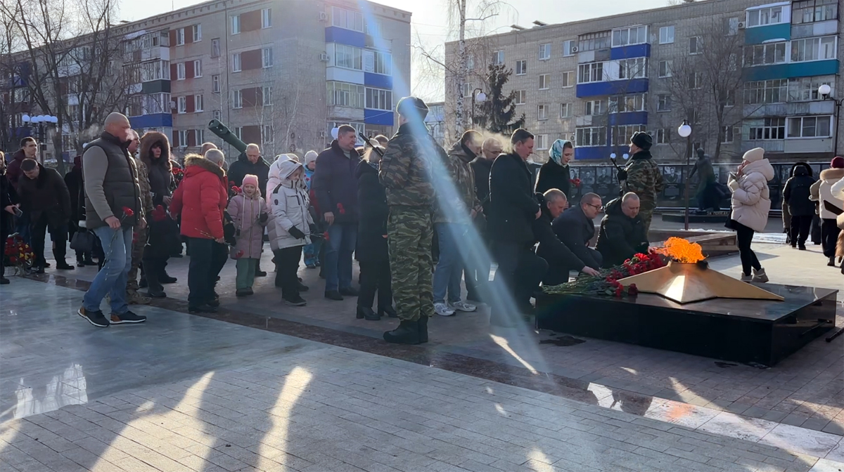 Участники церемонии почтили память земляков, не вернувшихся с фронтов Великой Отечественной войны и локальных конфликтов, а также всех, кто героически погиб, защищая Родину. К подножию мемориала легли живые цветы и венки как символ благодарности за мужество и героизм. Почетный караул у Вечного огня в течение всего мероприятия несли бойцы военно-патриотического центра «Набат».