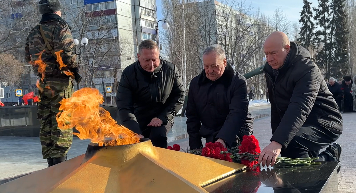 В Балаково прошла церемония возложения цветов к Вечному огню в честь Дня защитника Отечества
