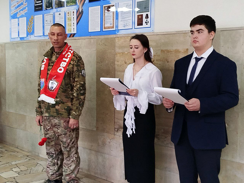 Александр Васильченко поделился с молодыми людьми своим боевым опытом, рассказав о беспримерном мужестве и героизме российских военнослужащих. В своем выступлении он подчеркнул, что герои специальной военной операции, многие из которых являются нашими земляками, служат ярким примером для всего общества, особенно для подрастающего поколения.