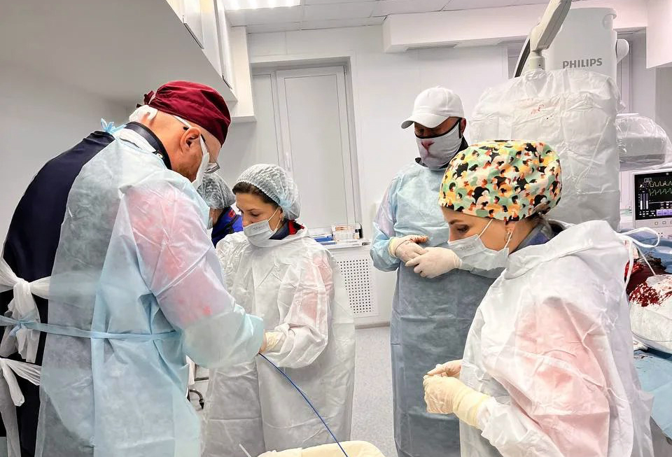Самую сложную часть – непосредственно удаление тромба – выполнила бригада рентгеноэндоваскулярных хирургов под руководством Александра Майорова и Алексея Струбалина, которые недавно прошли специализированное обучение в федеральных центрах. Их работу обеспечивала операционная команда, включающая анестезиолога-реаниматолога, операционных сестер и медсестру-анестезиста. Для передачи бесценного опыта на операции присутствовали хирурги других отделений больницы.