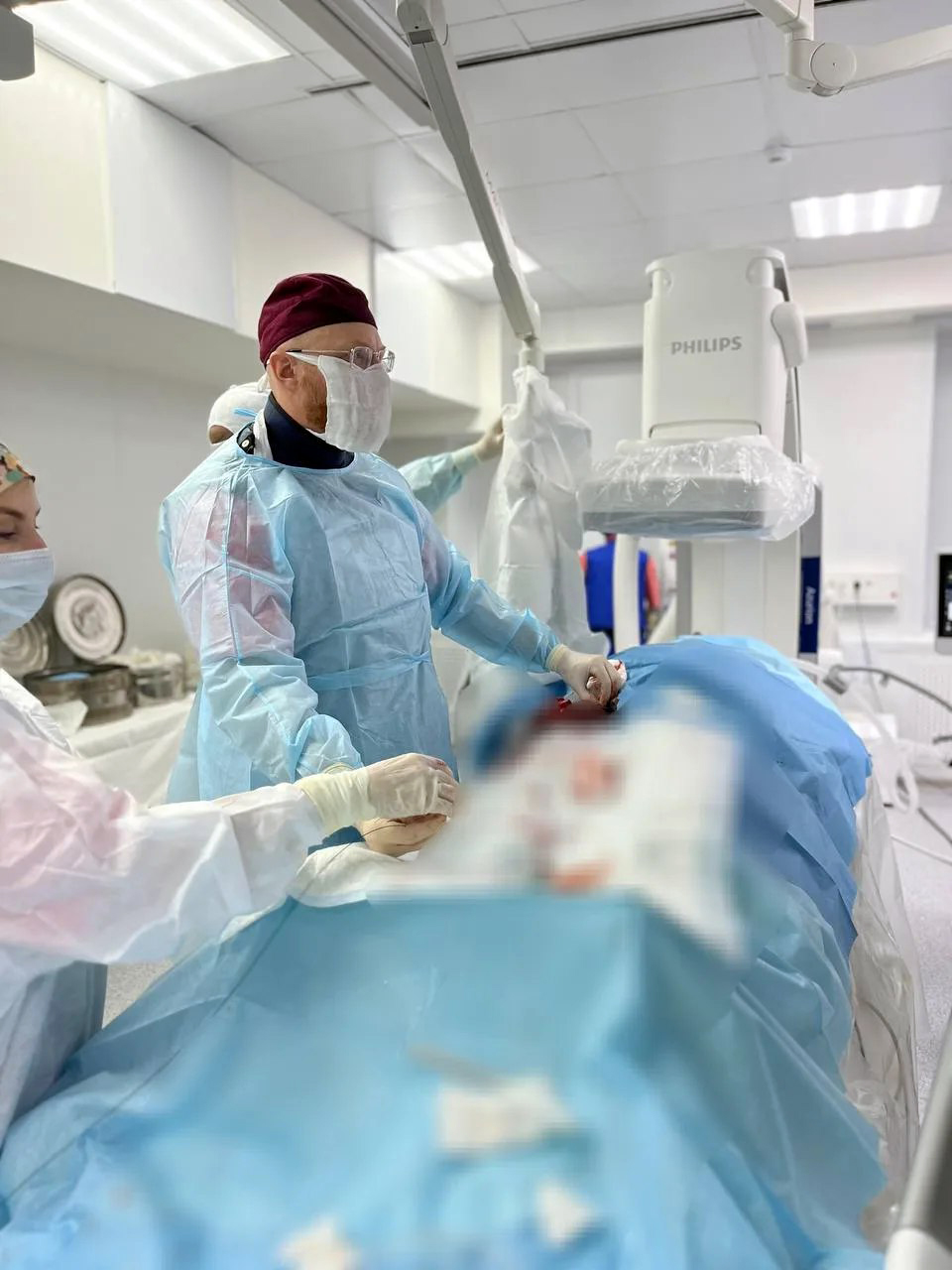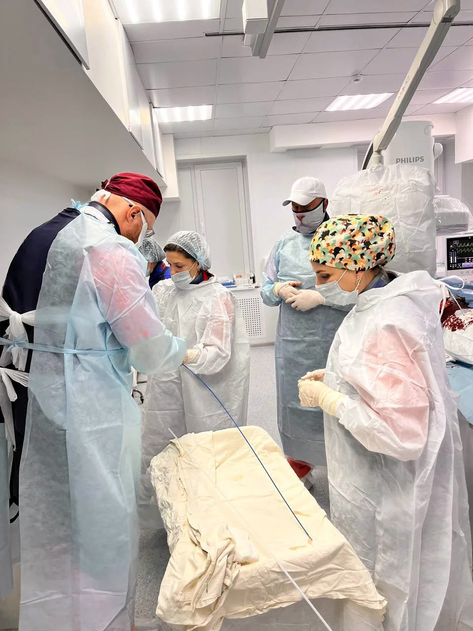 Самую сложную часть – непосредственно удаление тромба – выполнила бригада рентгеноэндоваскулярных хирургов под руководством Александра Майорова и Алексея Струбалина, которые недавно прошли специализированное обучение в федеральных центрах. Их работу обеспечивала операционная команда, включающая анестезиолога-реаниматолога, операционных сестер и медсестру-анестезиста. Для передачи бесценного опыта на операции присутствовали хирурги других отделений больницы.
