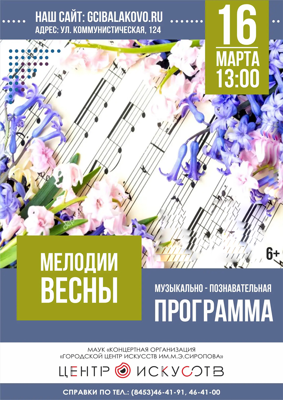 16 марта в 13:00 Городской центр искусств Балаково приглашает жителей и гостей города на уникальную музыкально-познавательную программу «Мелодии весны». Это событие станет настоящим подарком для ценителей прекрасного в преддверии Дня культуры.
