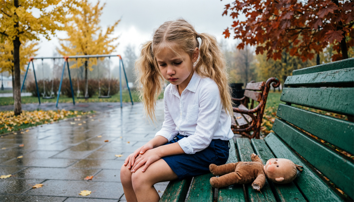 Однажды, когда они вдвоем пошли в город, мать дала девочке желтые монетки, чтобы та купила на них мороженное. Когда Машенька подбежала к скамейке, на которой несколько минут назад сидела мать, она была пуста. Уже и сладкое лакомство было давно съедено, и вечерние сумерки опустились на землю, заставляя ребенка дрожать от холода и страха, а мама все не шла. Пошел дождь, хотелось кушать. Девочка в легком ситцевом платьице, подтянув коленки к подбородку, все сидела на лавочке. Она боялась двинуться с места, испуганно оглядывалась по сторонам, ждала маму.