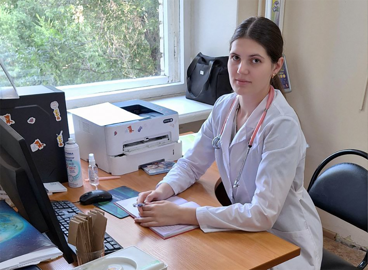 В отличие от многих выпускников, которым требуется время для адаптации, новый педиатр сразу включилась в работу с полной отдачей. По словам заведующей детским поликлиническим отделением №1 Марины Магомедовой, Мария Алексеевна ведет сразу два педиатрических участка.