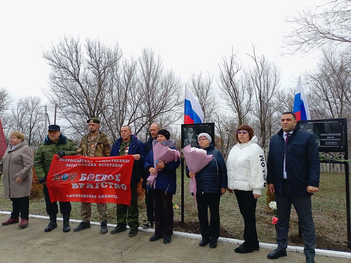 В селе Новополеводино Быково-Отрогского муниципального образования состоялась торжественная и скорбная церемония – открытие мемориальных досок односельчанам, павшим в зоне специальной военной операции. На мероприятии присутствовали жители, представители администрации, депутат Эльшан Мамедов и члены Балаковского отделения «Боевого братства», возглавляемого главой города Михаилом Усталовым.