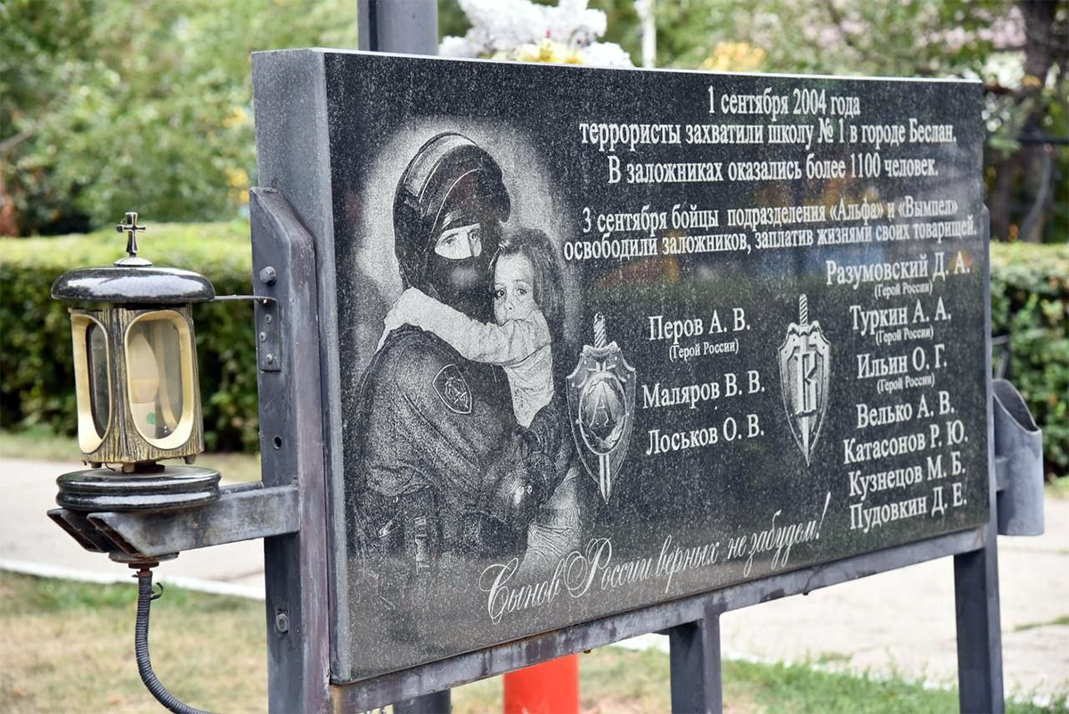 Центром сквера стал памятник майору ФСБ, торжественно открытый 3 сентября 2018 года. Также здесь установлены мемориальные таблички с именами бойцов спецподразделений «Вымпел» и «Альфа», погибших при выполнении служебного долга в Беслане в 2004 году. Таким образом, сквер превратился в признанное пространство памяти и мужества, где проходят уроки мужества для молодежи и памятные церемонии.