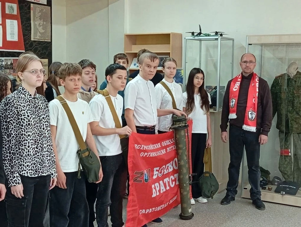 Ветеран СВО передал в музей школы Балаково боевые противогазы и тубус от РПГ-26