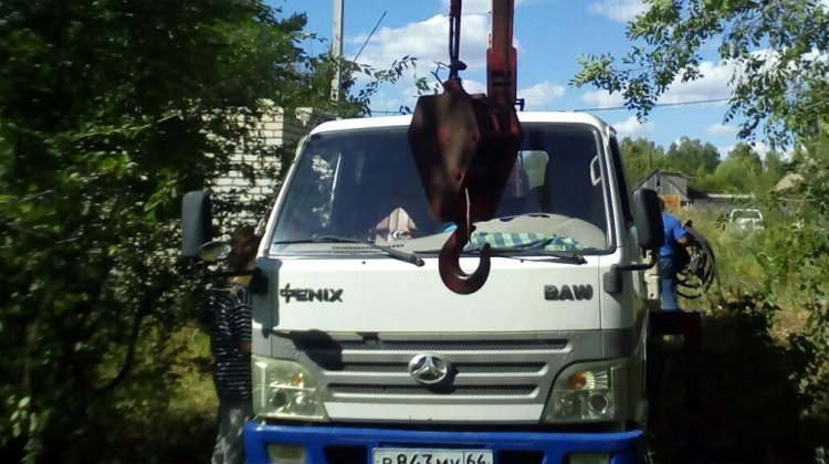 Приехавшие на место происшествия работники службы спасения с помощью альпинистского снаряжения и манипулятора достали тушу животного и передали хозяину.