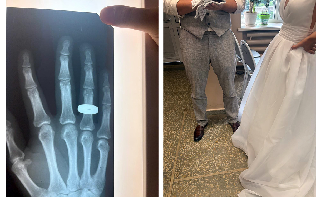 Не раздумывая долго и руководствуясь желанием помочь, молодой человек вместе с супругой принял решение действовать самостоятельно, не дожидаясь спецслужб. В ходе спасательной операции по эвакуации автомобиля и водителя из кювета жених и получил травму кисти.